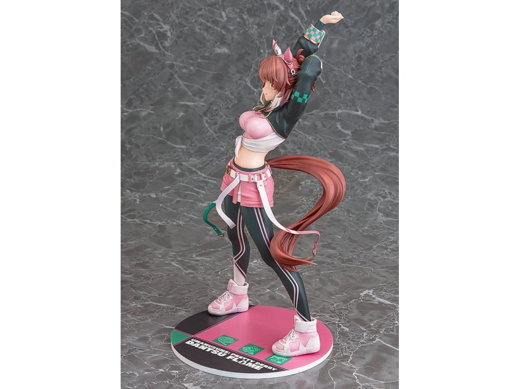 Z hry Umamusume: Dantsu Flame v mierke 1/7. Bola stvárnená v podobe figúrky v jej pretekárskom oblečení "Center?Spotlight", zatiaľ čo spokojne vykonáva svoje strečingové cvičenia. Dantsu Flame je zobrazená s rozpaženými rukami, čím figúrka pôsobí dojmom prirodzeného momentu tesne pred pretekmi. Pružné krivky jej obratu, silné nohy a vlajúci chvost dodávajú postave energickú a dynamickú siluetu. Jej športový pretekársky úbor má ružovú farebnú schému, ktorá bola verne prenesená do reálneho života. Od jej šortiek a legín až po tenisky postava prezentuje športovú silu a roztomilosť. Starostlivo boli obnovené aj také detaily, ako je zdobenie na manžetách a v oblasti opasku. Súčasťou balenia je aj náhradná tvár pre inú možnosť vystavenia. Prepnutím z jemného úsmevu na žmurkanie si môžete vychutnať veselú a energickú Dantsu Flame. Elegantný podstavec figúrky je zdobený menom a ikonami Dantsu Flame, čo dodáva figúrke pri vystavení špeciálny nádych. Nezabudnite si do svojej zbierky pridať pracovitú a energickú figúrku Dantsu Flame!Dodatočné parametre