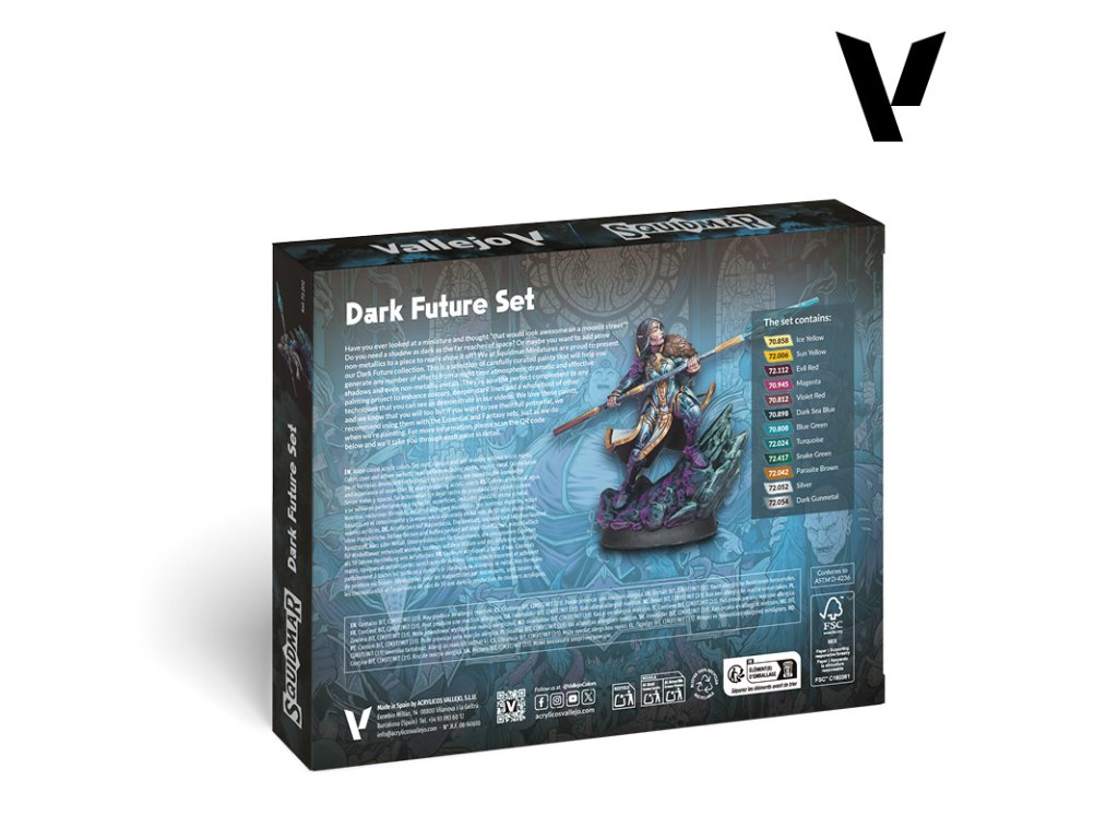 My v Squidmar Miniatures sme hrdí na to, že vám môžeme predstaviť našu sadu Dark Future. Ide o výber starostlivo vybraných farieb, ktoré vám pomôžu vytvoriť ľubovoľný počet efektov od nočnej atmosféry, dramatických a efektných tieňov až po nekovové kovy.