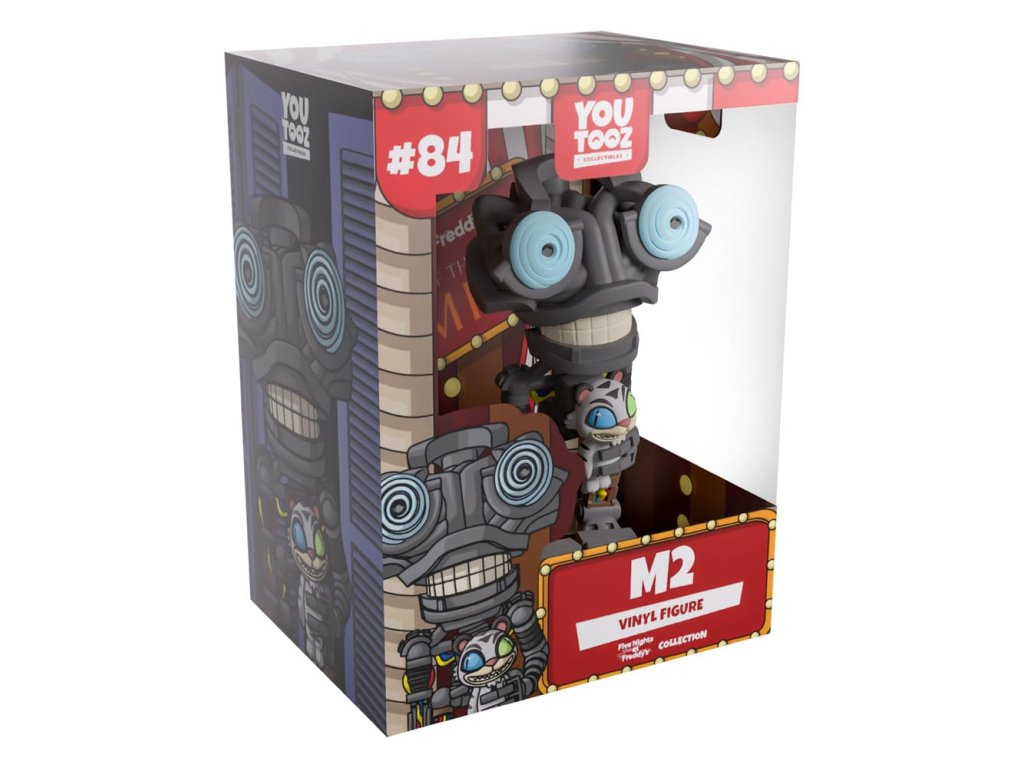 "Otec je zaneprázdnený, kamarát. Prečo sa nejdeš hrať von?" Mysleli sme si, že sme s M2 na Murrayho kostýmovom panstve skončili, ale oni svojím debutom na Youtooz dokázali, že to bol len začiatok! Meria 12,45 cm a má jasne modré oči, ktoré tvoria špirálovitý vzor a vykúkajú zo sivej tváre, okolo ktorej sú omotané hrubé drôty vytvárajúce širokú lebku. Bledé zuby takmer vytvárajú úsmev, zatiaľ čo dlhé ruky a nohy visia z kĺbov úzkeho endoskeletu. S tmavým lemovaním a svietiacimi červenými, žltými a modrými drôtmi pokrývajúcimi tenké končatiny môže v ruke držať svoju vzácnu bábiku Bieleho tigra. Balenie vyzerá, akoby stálo samostatne v tmavej spálni s mrakmi a hviezdami na pruhovaných stenách. Potom je zvnútra bábika umiestnená priamo uprostred červenožltého cirkusového stanu s dlhými závesmi a svetelnými šnúrami. To pokračuje aj na ochrannom obale, kde je jej postavičku vidieť cez veľké priehľadné okienko na prednej strane obalu. Tento zberateľský kúsok je zabalený v matnom, reliéfnom, ochrannom vonkajšom obale a chránený vlastným plastovým obalom pre maximálnu ochranu počas prepravy. o hre Five Nights at Freddy's: Five Nights at Freddy's je survival hororová hra od Scotta Cawthona. Hra sa odohráva v prostredí, kde hráč pracuje ako nočný strážnik v rodinnej pizzerii Freddyho Fazbeara, kde sa čoskoro stretne s množstvom animatronických príšer. Krátko po vydaní hry v roku 2014 si získala kultovú popularitu a rýchlo sa vyvinula do komplexného fiktívneho univerza doplneného príbehom a rôznymi derivátmi.Dodatočné parametre
