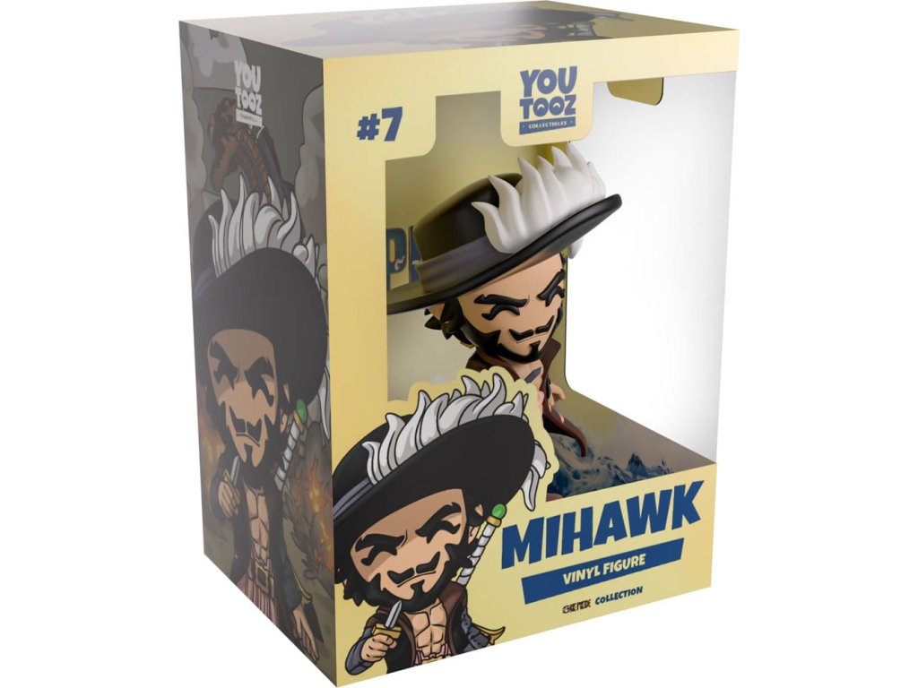 "Nestrieľam zajacov z dela." Mihawk sa do Youtooza pustí s úplnou ľahkosťou! Stojí 12,2 cm vysoký, v natiahnutej ruke drží malý nôž a jeho vážnu tvár rámujú hranaté fúzy a ostré fúzy. Z jeho klobúka so širokou strieškou lietajú biele pierka. Na sebe má voľné ružové nohavice zastrčené do pevných čižiem a dlhý rozopnutý hnedý kabát, ktorý odhaľuje jeho svalnatý trup. Na chrbte má pripevnený obrovský elegantný meč. Na obálke je zobrazená pláž posiata výbuchmi a v pozadí horiaca loď. Vnútri je živá modrá vlna vysielajúca bielu penu k oblohe pred krásnym bledožltým pozadím, tento dizajn potom pokračuje na ochrannom obale, kde je jeho postavu vidieť cez veľké priehľadné okienko na prednej strane. Tento zberateľský kúsok sa dodáva v matnom, reliéfnom, ochrannom vonkajšom obale a v ochrannej plastovej škatuli na mieru pre maximálnu ochranu počas prepravy. o One Piece: One Piece je úplne nový seriál spoločnosti Netflix, ktorý je adaptáciou dlhoročnej epickej mangy Shonen, ktorú napísal a ilustroval Eiichiro Oda. Sleduje Luffyho a jeho excentrickú posádku so slamenými klobúkmi, ktorá si na mori získava nepravdepodobných priateľov a bojuje s obrovskými zloduchmi v snahe stať sa kráľom pirátov a nájsť tajomný One Piece!Dodatočné parametre