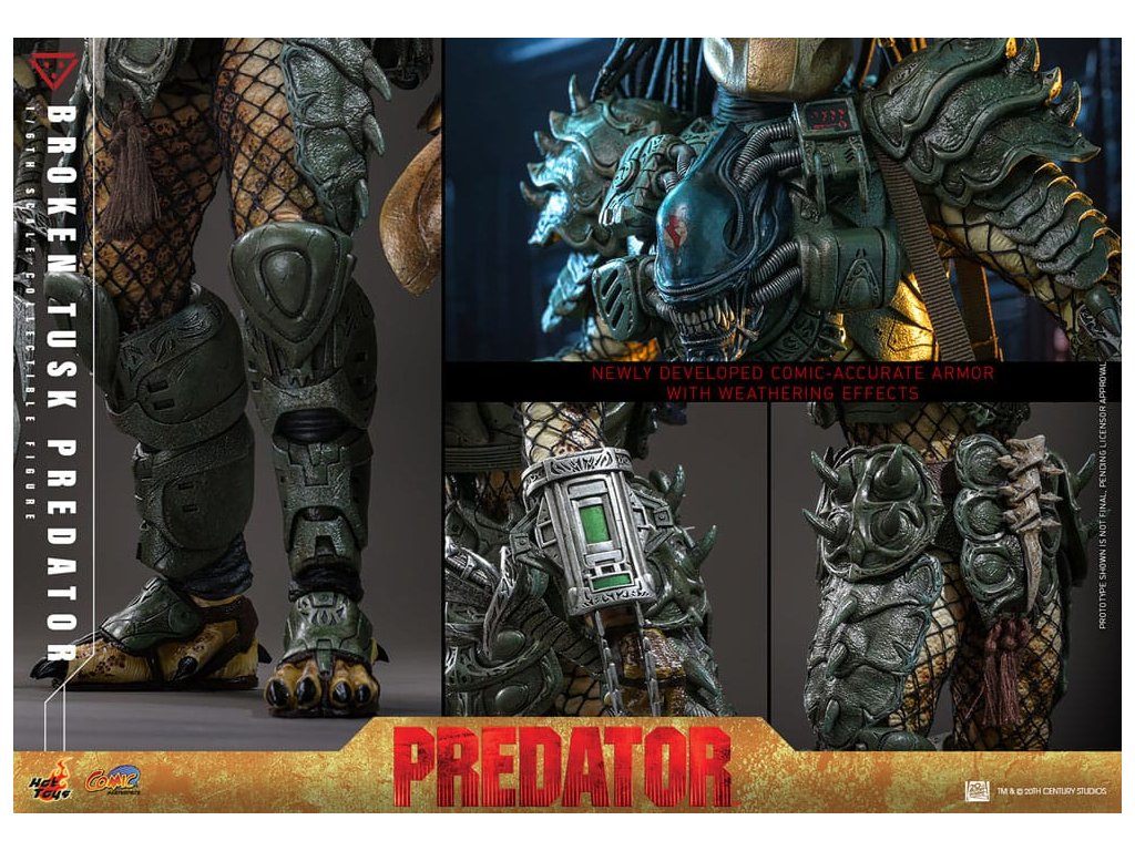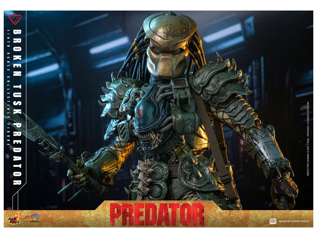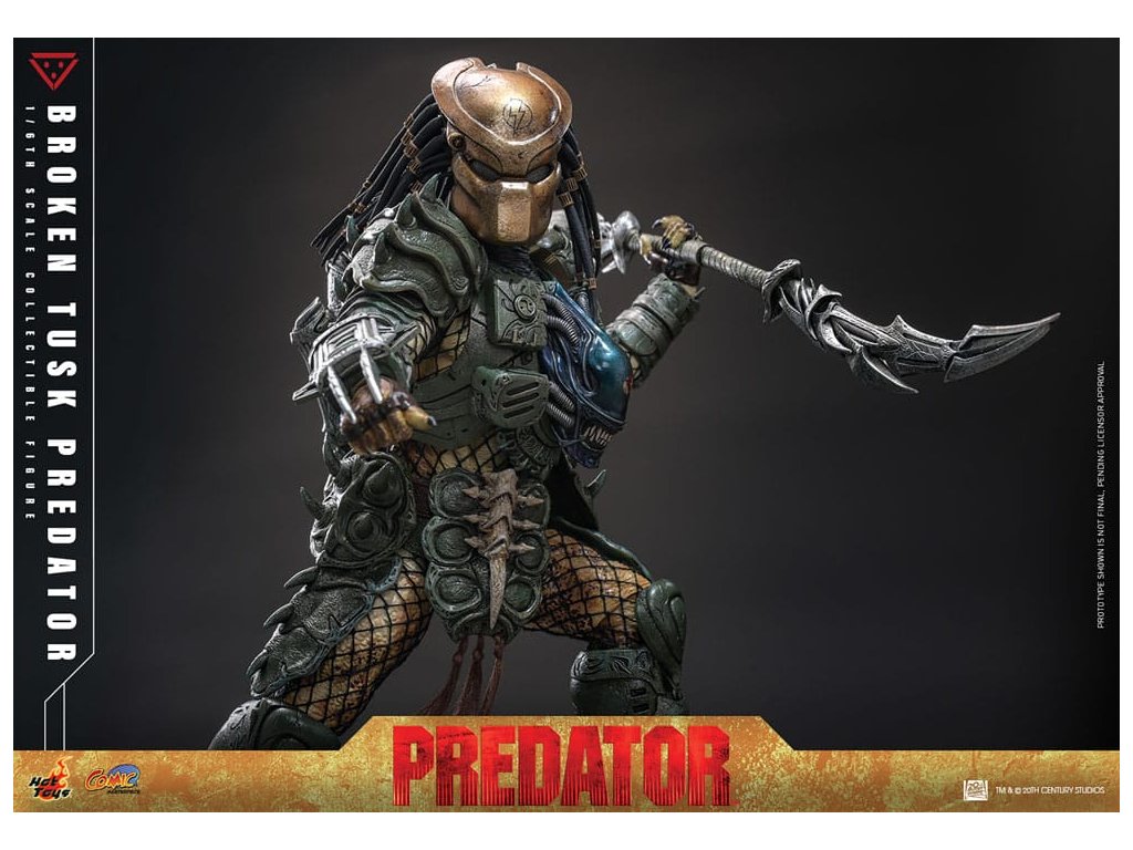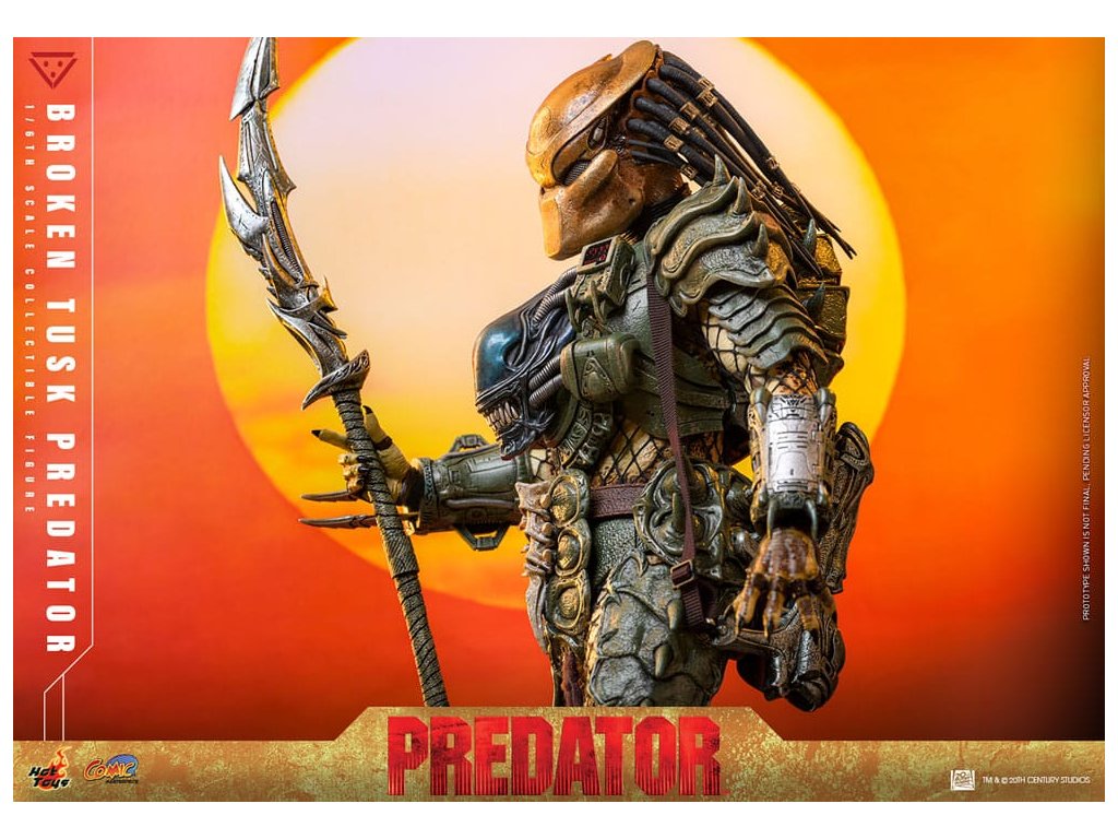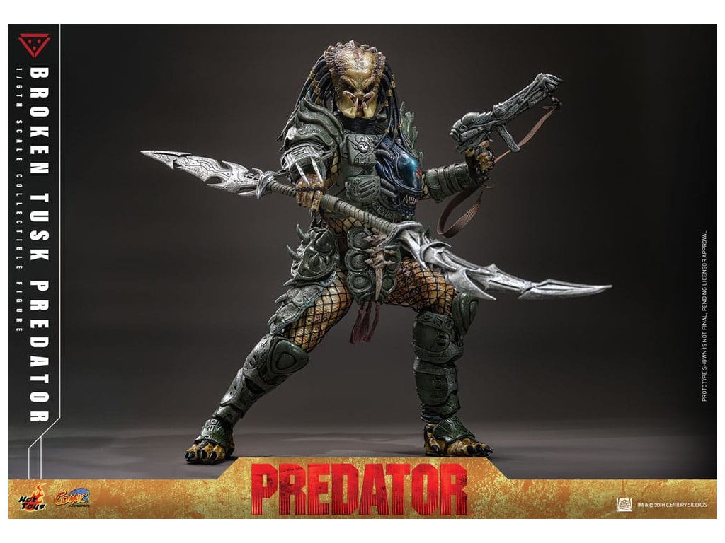 "Spomeňte si na mňa..." - to povedal lovec zlomenín Machiko Noguči tesne pred svojou smrťou. Komiksy Alien vs. Predator nám priniesli srdcervúce bitky medzi Xenomorphmi a Predátormi. Jednou z najvýraznejších postáv je Zlomový lovec, vodca Predátorov so zlomeným tesákom, ktorý sa preslávil ako neľútostný a skúsený lovec. Počas incidentu v Ryushi sa spojil s človekom Machiko Noguči, aby bojovali proti mimozemskej invázii. Ťažko zranený kráľovnou pred svojou smrťou pokrstil Machiko na pravého lovca - posledný čin, ktorý spečatil jeho trvalý odkaz. Fanúšikovia stále milujú jeho zmes krutosti, cti a zdráhavého súcitu. Spoločnosti Sideshow a Hot Toys s potešením predstavujú zberateľskú figúrku Breaking Hunter v mierke 1/6, inšpirovanú touto nezabudnuteľnou postavou z komiksov Alien vs. Predator. Táto akčná sci-fi figúrka oživuje tohto nemilosrdného bojovníka, má starostlivo vymodelovanú hlavu s jemnými gumičkami na vlasy a výraznú masku Predátora s jedinečným motívom flashbacku. Je odetý do novo navrhnutého brnenia Predátora s reálnymi efektmi poškodzovania poveternostnými vplyvmi a výrazným dizajnom hlavy Xenomorfa na hrudnom pláte, čo dokonale vystihuje podstatu Lovca zlomenín. Táto figúrka, vybavená širokou škálou zbraní vrátane pochodne, dvojitého meča, ktorý sa dá rozdeliť na dva samostatné meče, a zápästnej čepele, ktorú možno pripevniť na rukáv, je pripravená na boj. Navyše sa dodáva s podstavcom s motívom relikvie Xenomorph, ktorý dodá vašej expozícii ďalšiu vrstvu hĺbky. Špeciálna edícia, ktorá je dostupná len na vybraných trhoch, obsahuje navyše masku poškodenú v boji pre ďalšie možnosti vystavenia. Nepremeškajte príležitosť predobjednať si túto pôsobivú figúrku a dajte tomuto neľútostnému bojovníkovi šancu obhájiť si miesto vo vašej zbierke!Dodatočné parametre