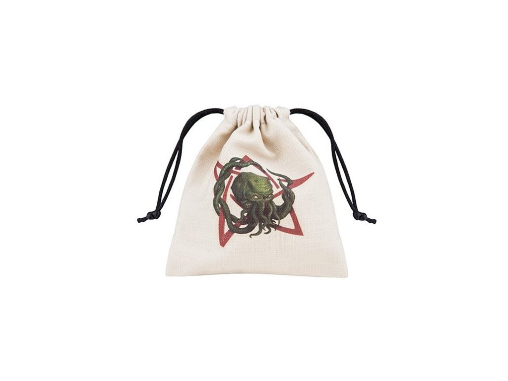 Plátenné vrecko na kocky so šnúrkou zdobené emblémom Call of Cthulhu (inšpirované legendárnym hororovým dielom H. P. Lowecrafta). Rozmery vrecka sú 10 x 13 cm.Dodatočné parametre