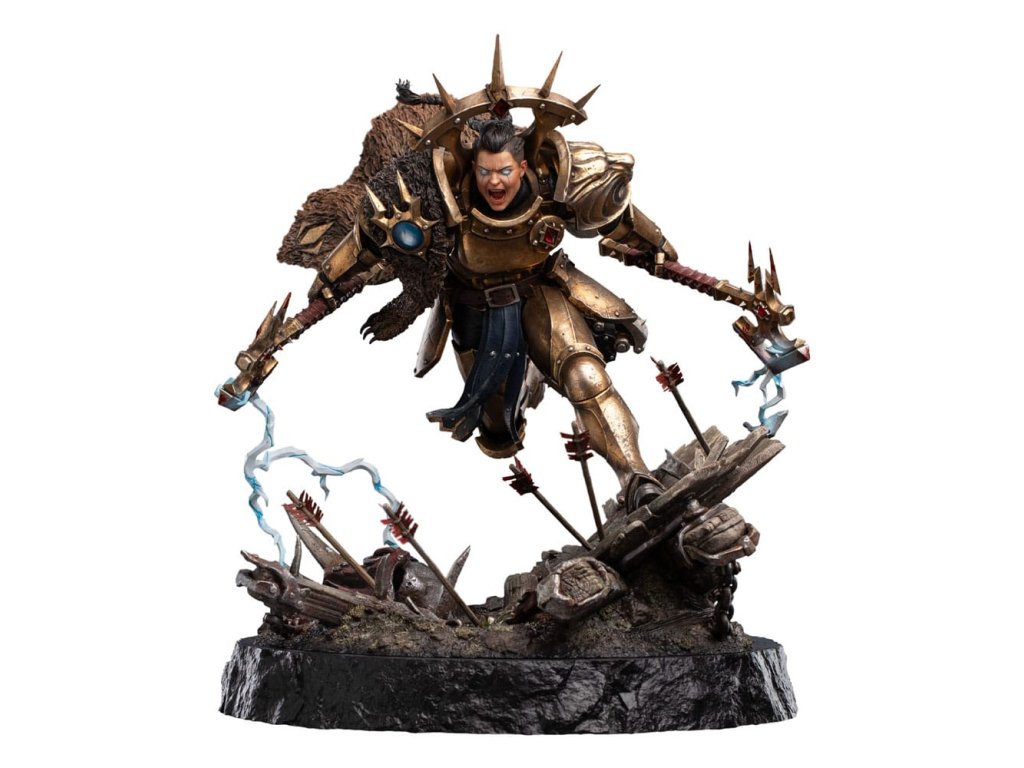 Keď udrie blesk, nerešpektuje vietor ani sa nevyhýba dažďu; v okamihu sa spustí z nebies a spáli vzduch, ktorý sa odvážil zastaviť jeho cestu. Podobne aj Neave neberie ohľad na všetkých, ktorí stoja medzi ňou a jej cieľom, a v búrke svalov a ocele prináša Sigmarov hnev. Tí hlupáci, ktorí sa jej odvážia brániť v bojovom postupe, vedia, že ich mäso je roztrhané ako desivá pripomienka jej lovu, dôkaz, že nikto nemôže uniknúť Blacktaloninmu úderu. zachytená v jedinom, rozzúrenom okamihu, Neave Blacktalon vyráža do boja; zlaté brnenie žiari, sekery sa blýskajú bleskami, jej bojový pokrik sa ozýva po celom bojisku. Každý detail rozpráva príbeh Sigmarovej vyvolenej vrahyne: trosky vojnovej plošiny pod jej nohami, orukská prilba rozdrvená do zeme, búrková zúrivosť vyrytá do každej línie jej postavy. túto dynamickú pózu oživili naši zanietení umelci, ktorí čerpajú z desaťročí skúseností v oblasti budovania sveta a dizajnu postáv, a vydestilovali Neavinho nezlomného ducha do zberateľskej podoby. Od jemného oblúka jej vrkočov v pohybe až po starostlivo vytvorené textúry vypaľovanej ocele a zakrvavených čepelí - každý prvok bol vytvarovaný, upravený a namaľovaný s rovnakou posadnutou pozornosťou k detailu, ktorá definuje naše remeslo.Hrdinka Smrteľných ríš, Neave Blacktalon, vrahyňa božského kráľa, zobrazená v mierke 1:6, je božským príkladom mýtu premeneného na hmotu a hnevu na formu.- Limitovaná edícia 650 kusov;- mierka 1:6;- Primárne vyrobené z polystonu;- Digitálne vytesané umelcami Weta Workshop, Danielom Cockersellom a Victorom Gullym;- Dynamická póza zachytáva Neave uprostred skoku, ako skáče z rozbitej orruckej vojnovej plošiny;- Ozbrojená je sekerami, ktoré praskajú bleskami;- Zbrane sa lesknú opotrebovaným leskom Sigmarovho vyvoleného zabijaka;- Scénu dopĺňa rozdrvená orrucká prilba a šípy zabodnuté do zeme.Rozmery: 34 cm x 40 cm x 39 cm.Dodatočné parametre