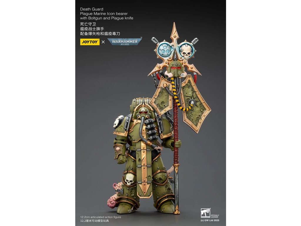 Warhammer 40,000 akčná figúrka Death Guard Plague Marine Icon bearer s Boltgunom a morovým nožom 12 cm