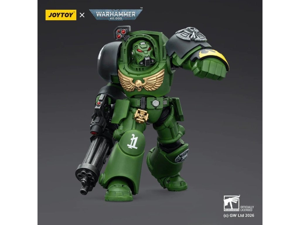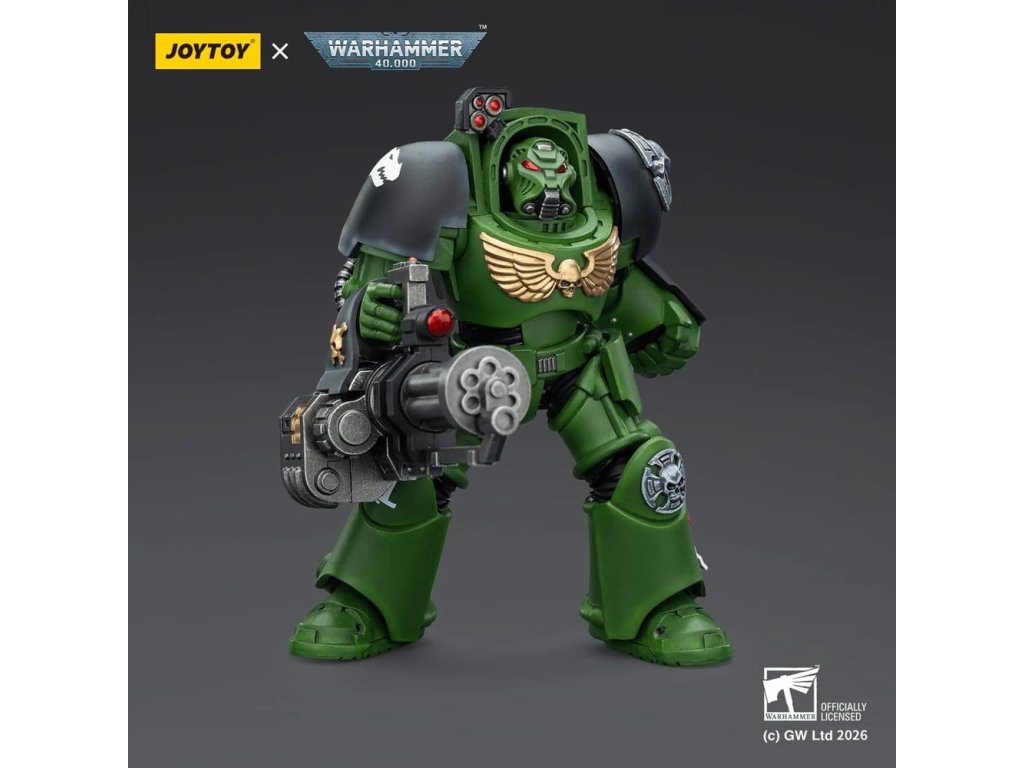 Warhammer 40 000 akčná figúrka Salamanders Terminator 3 s Power Fist a Assault Cannon 14 cm