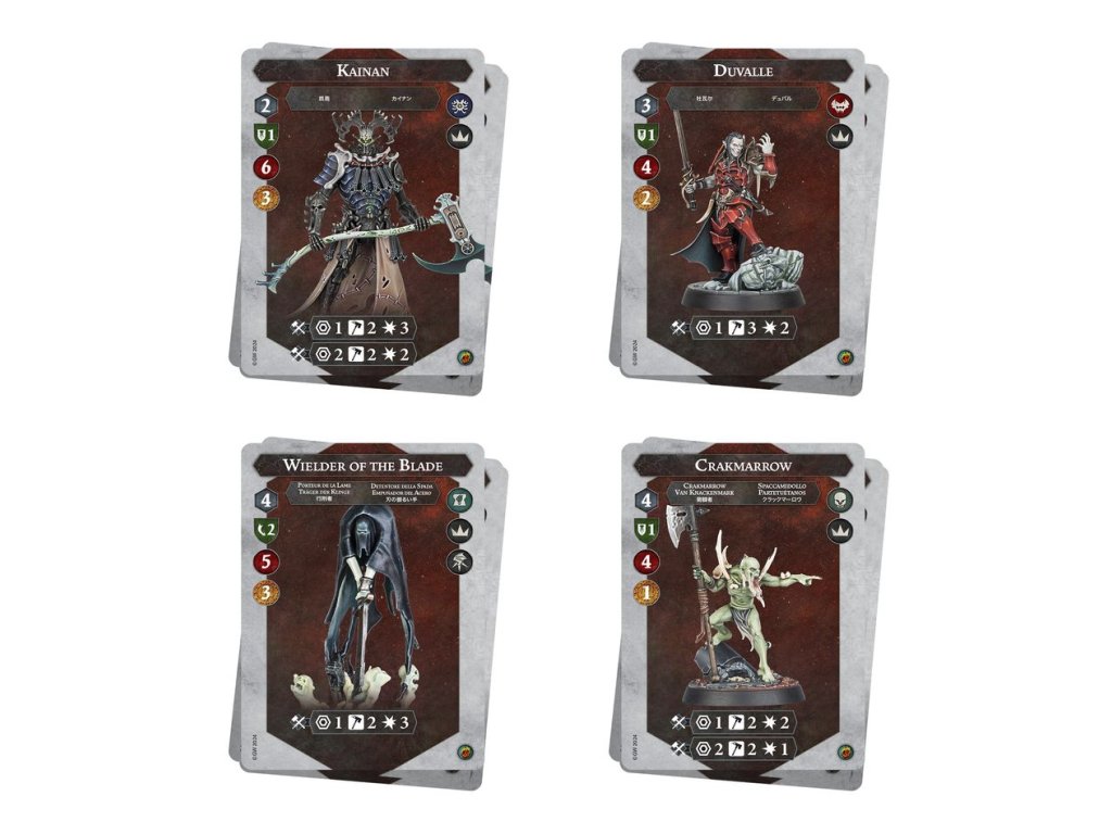 4x Karmínový dvor - Duvalle, Gorath, Vellas a Ennias - 6x Kainanskí žreci - Kainan, Khenta, Senha, Karu, Nohem a Hakor - 7x Grymwatch - Crakmarrow, Gristlewel, Valreek, Kráľovský mäsiar, Majster Talon, Nočný herold a Vojvodovi harieri