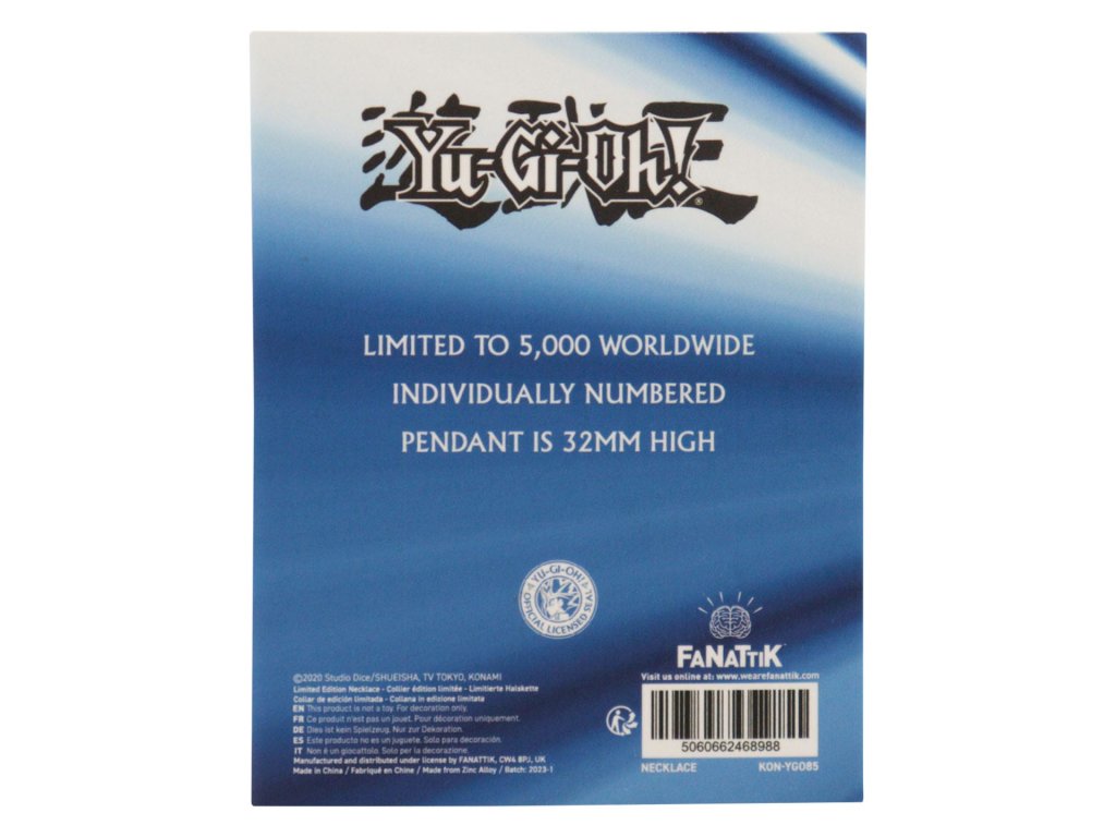 Je považovaný za jednu z najmocnejších príšer vo svete Yu-Gi-Oh! a teraz môžete vyjadriť svoju lásku k tomuto hrôzostrašnému bojovníkovi pomocou nášho oficiálne licencovaného náhrdelníka s príveskom. Prívesok s povrchovou úpravou zo starožitného niklu a reliéfnym vzorom má rozmery 22 x 32 mm a je celosvetovo limitovaný na 5 000 kusov. Každý náhrdelník je individuálne očíslovaný a dodáva sa spolu s elegantnou prezentačnou krabičkou.