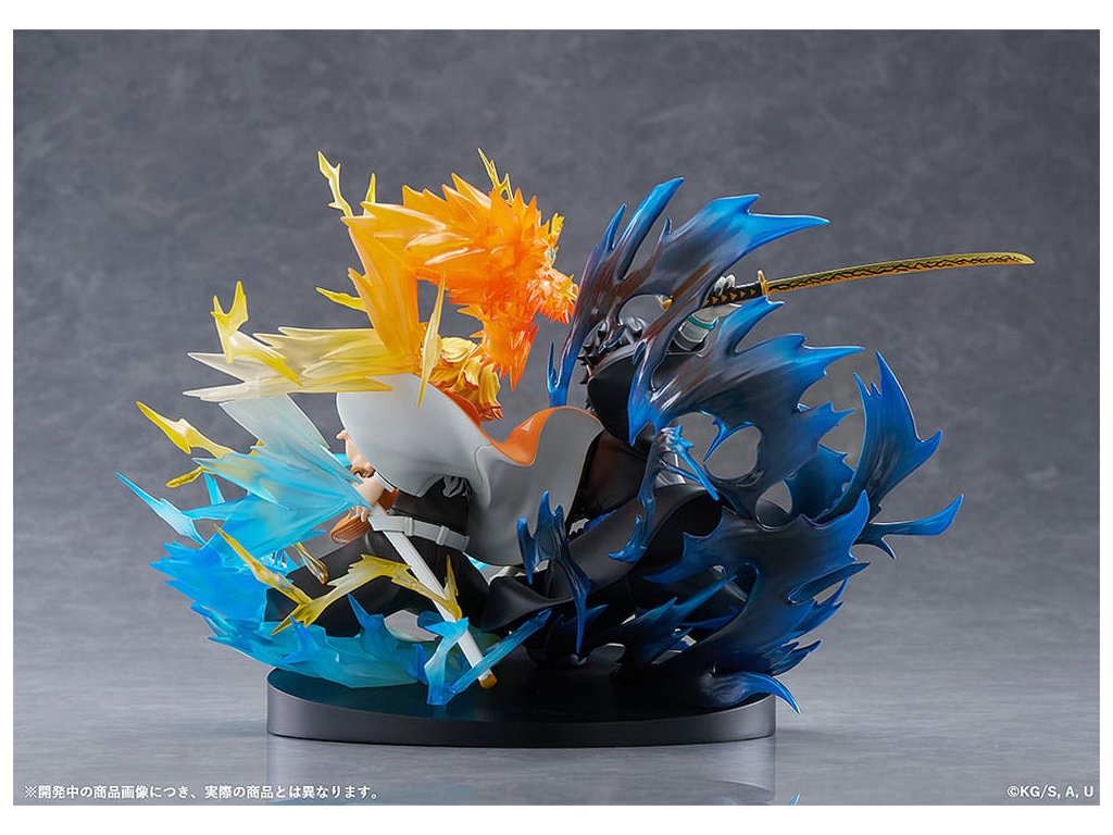 Z anime Demon Slayer: Kimetsu no Yaiba prichádzajú figúrky Zenitsu Agatsuma a Kaigaku bez mierky! Ožíva tu smrtiaci stret uprostred hromov. Výrazy Zenitsua a Kaigakua zachytávajú napätie, ktoré napĺňa ich boj. Efektové figúrky pre Breath of Thunder, Seventh Shape: Honoikazuchi no Kami, sú vyrobené z priehľadných materiálov a odvážne farebné, s dôkladným dôrazom na detail. Kaigakuov dych hromu je zobrazený pomocou kovovo modrej farby, ktorá rekonštruuje jeho čierne a modré blesky. Napriek tomu, že figúrky nie sú v mierke, môžu sa pochváliť ohromujúcou úrovňou kvality. Doplňte svoju zbierku o osudový stret týchto dvoch rivalov. Predbežný dátum vydania: január 2027Dodatočné parametre