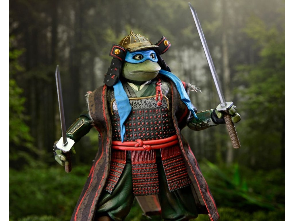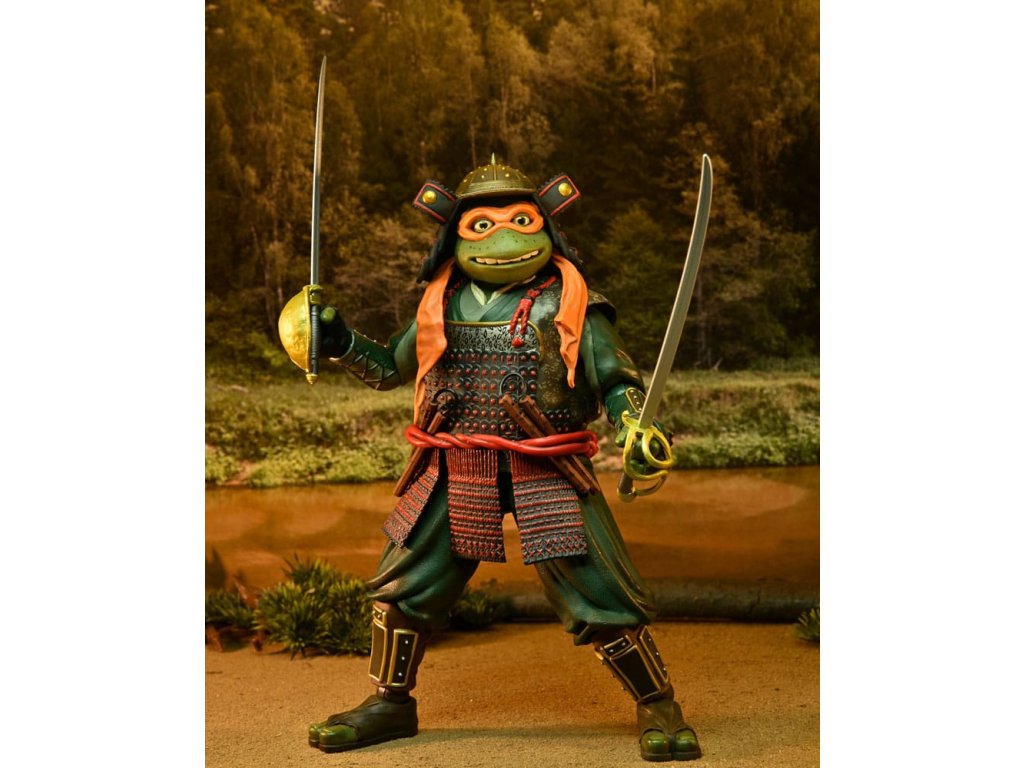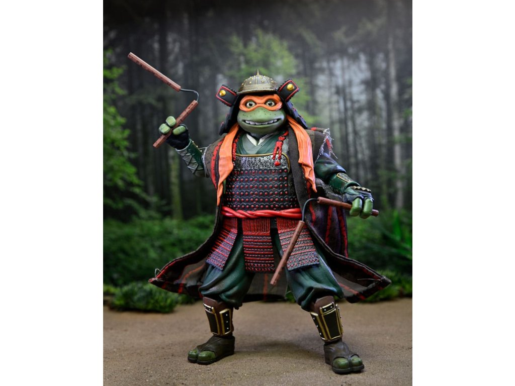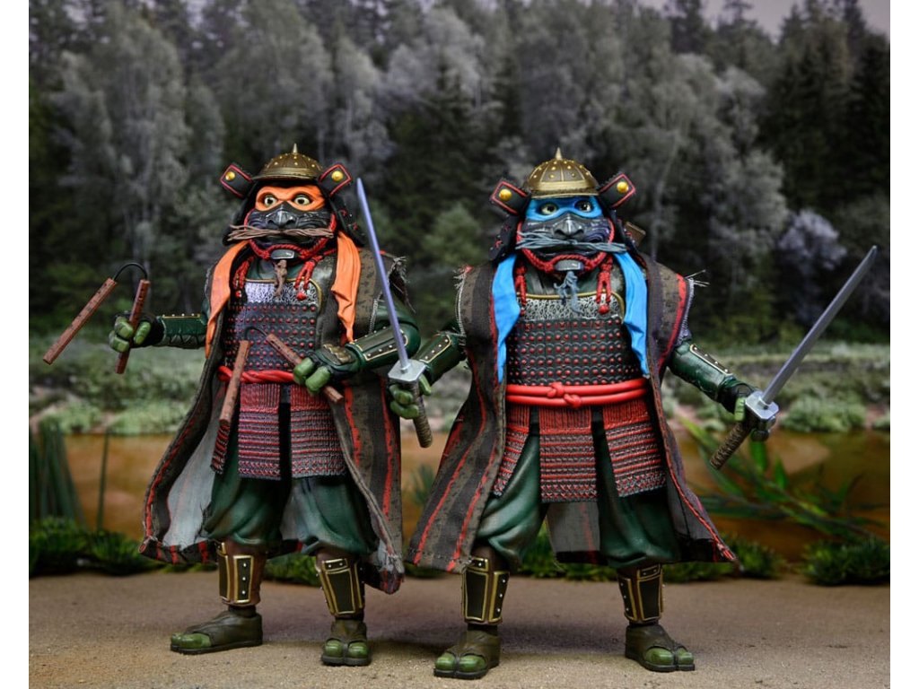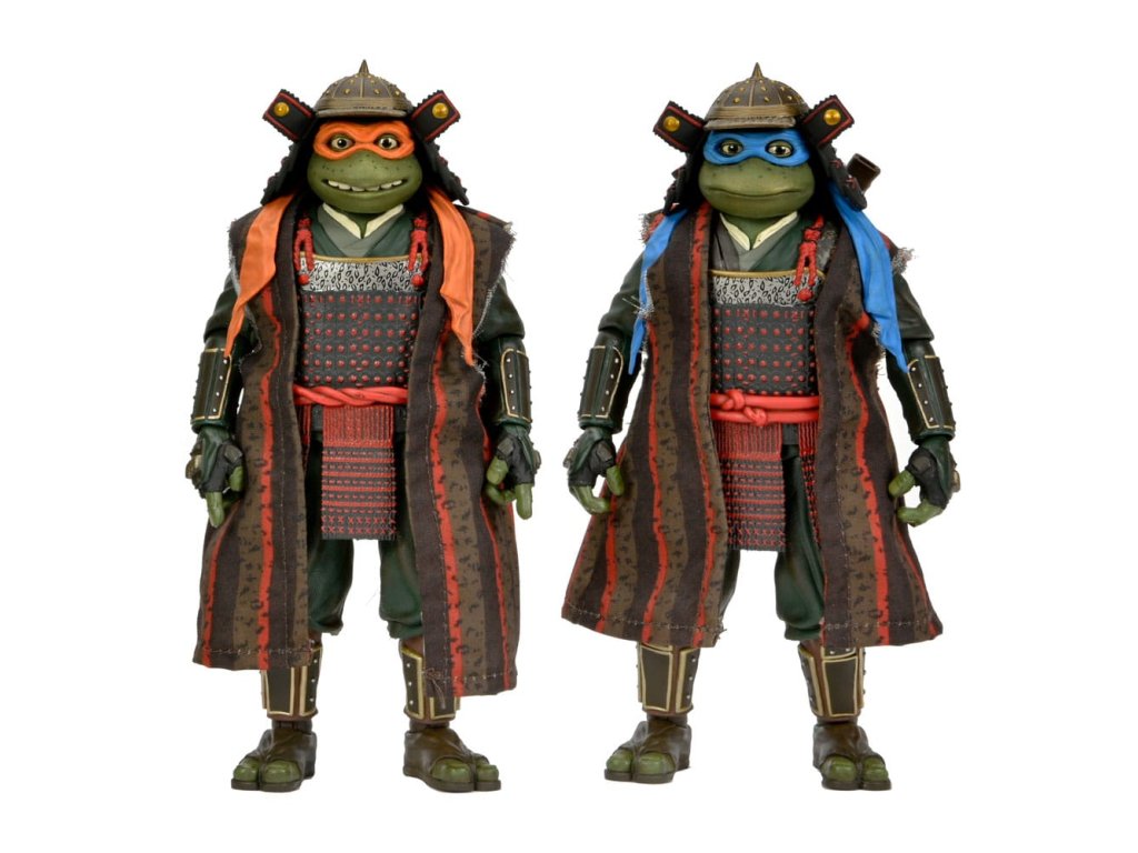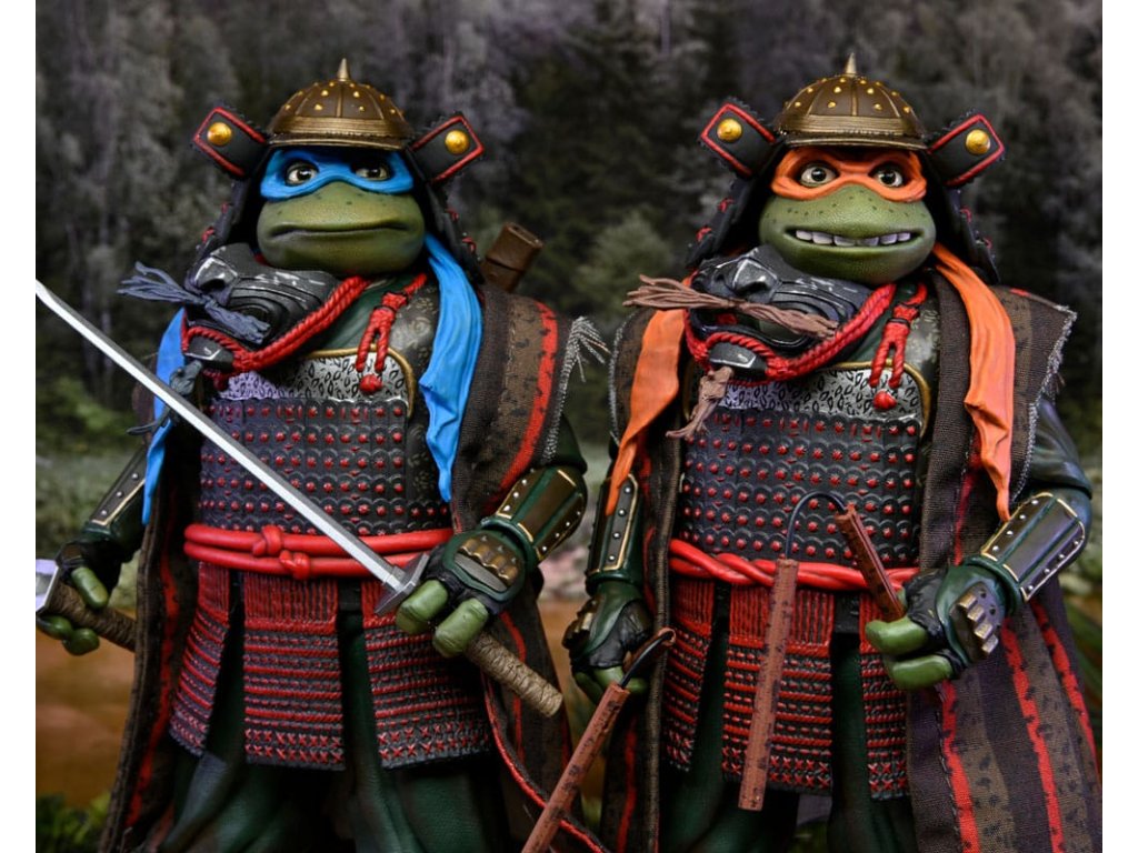 Doplň svoju zbierku filmovej trilógie TMNT od spoločnosti NECA o tieto úžasné 2-packové figúrky zo série Muppets of Ninja Zelv III! Získaj Leonarda a Michelangela v ich samurajskom odeve ako úplne radikálne akčné figúrky v 7-palcovej mierke. Figúrky sa dodávajú s vymeniteľnými rukami, 2 maskami oni, 2 katanami, 2 nunčakmi a 2 šabľami. Balené so sklenenou prednou časťou.Dodatočné parametre